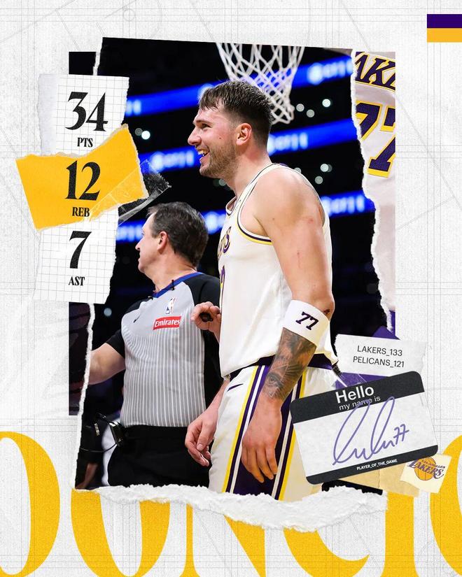 常规赛,湖人主场133-121战胜鹈鹕。