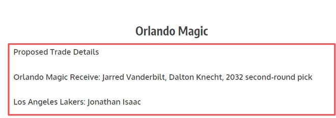 露天看台也列出了湖人的补强方案:1、与奥兰多魔术交易,换取防守支柱。潜在交易方案:湖人送范德比尔特、克内希特以及一个2032年次轮选秀权,从魔术换回艾萨克。对于需要提升锋线防守深度的魔术而言,范德比尔特可以作为替补带来需要的防守能力。尽管范德彪的交易吸引力有限,但搭配年轻射手克内希特和一个次轮签,这份报价或许能打动魔术。而对湖人来说,引入艾萨克则能完美解决内线防守的需求。他职业生涯场均1.3次封盖的护框能力,正是目前湖人阵容所急需的稳固屏障。