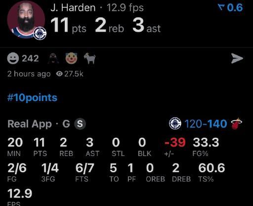12月2日,NBA常规赛中,快船123比140不敌热火,本场比赛哈登6投2中,得到11分2篮板3助攻,正负值为-39!